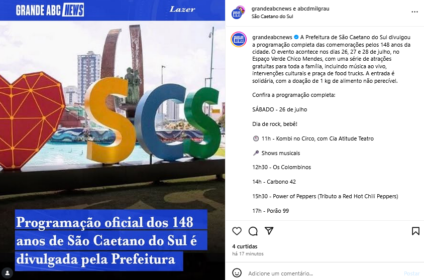 Veículo: Online -> Instagram -> Instagram Grande ABC News