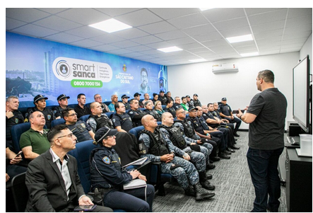 Durante o treinamento, os participantes puderam conhecer em detalhes os recursos do Smart Sanca, incluindo sistemas avançados de reconhecimento facial e leitura automatizada de placas veiculares