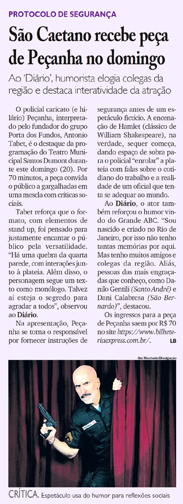 São Caetano recebe peça de Peçanha no domingo