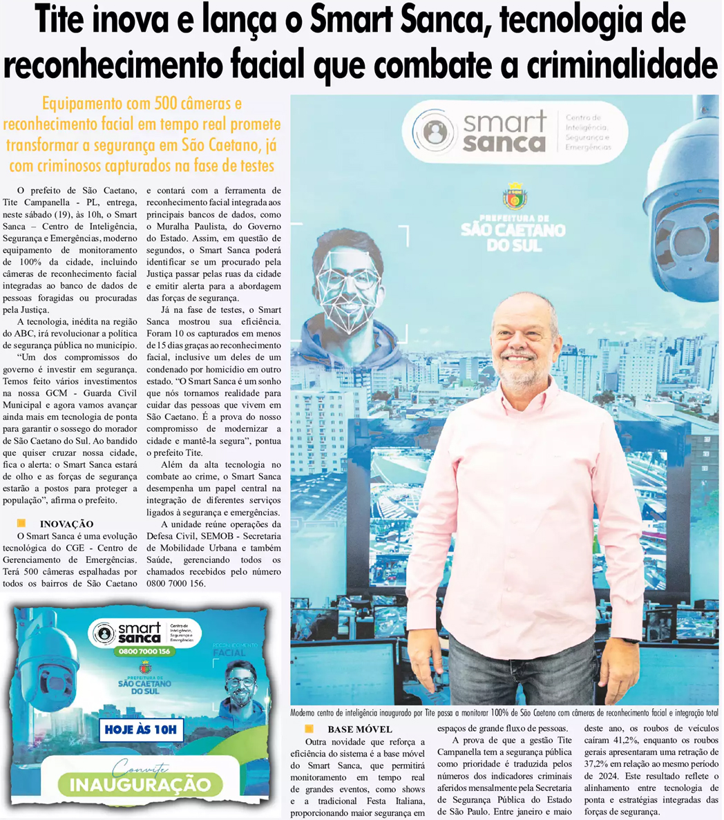 Tite inova e lança o Smart Sanca, tecnologia de reconhecimento facial que combate a criminalidade