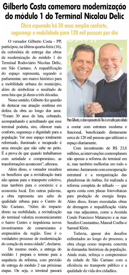Gilberto Costa comemora modernização do Módulo 1 do Terminal Nicolau Delic