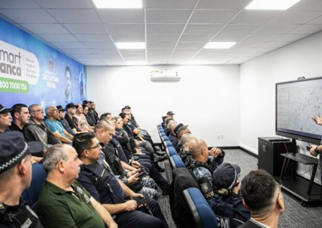 Durante o treinamento, os participantes puderam conhecer em detalhes os recursos do Smart Sanca, incluindo sistemas avançados de reconhecimento facial e leitura automatizada de placas veiculares.