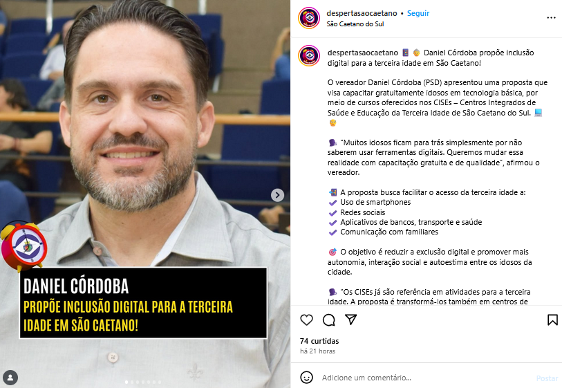 Daniel Córdoba propõe inclusão digital para a terceira idade em São Caetano