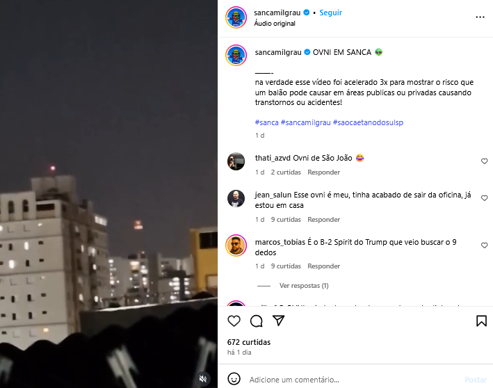 Veículo: Online -> Instagram -> Instagram Sanca Mil Grau