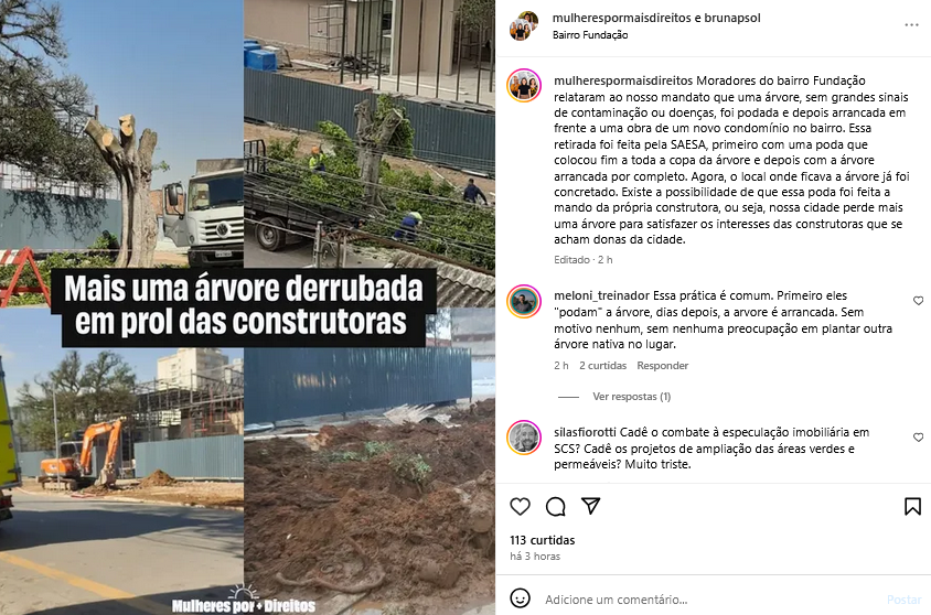 Mais uma árvore derrubada em prol das construtoras
