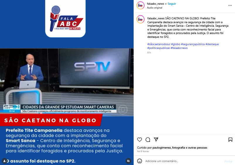 São Caetano na Globo: Prefeito Tite Campanella destaca avanços na segurança da cidade com a implantação do Smart Sanca