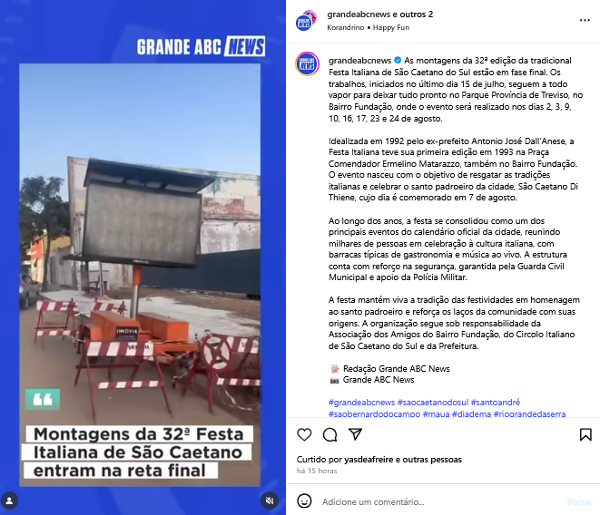 Veículo: Online -> Instagram -> Instagram Grande ABC News