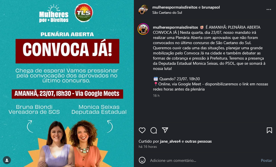 Veículo: Online -> Instagram -> Instagram Mulheres por Mais Direito