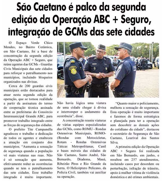 São Caetano é palco da segunda edição da Operação ABC + Seguro, integração de GCMs das sete cidades