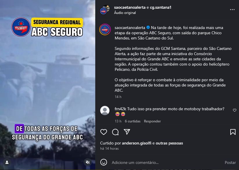Veículo: Online -> Instagram -> Instagram São Caetano Alerta