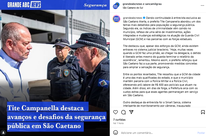 Tite Campanella destaca avanços e desafios da segurança pública em São Caetano
