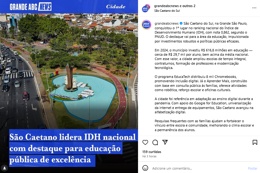 São Caetano lidera IDH nacional com destaque para educação pública de excelência