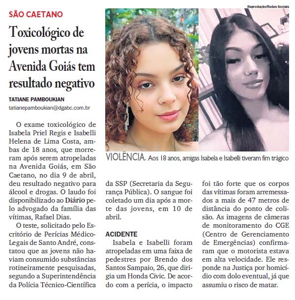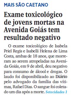 Toxicológico de jovens mortas na Avenida Goiás tem resultado negativo