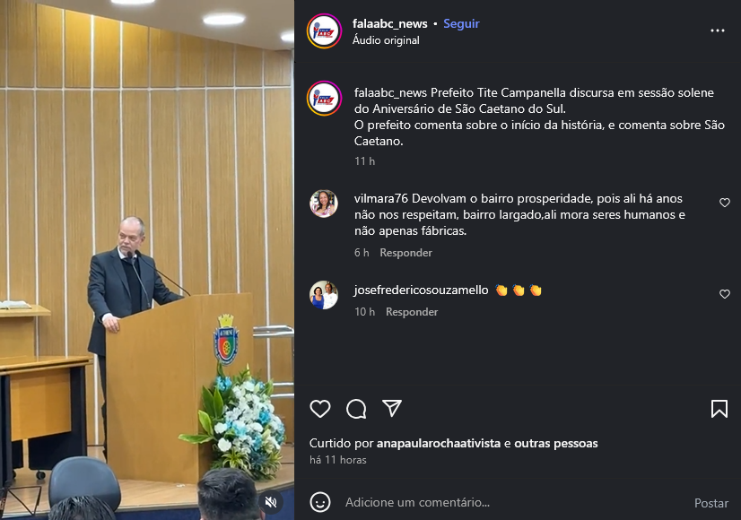Veículo: Online -> Instagram -> Instagram Fala ABC