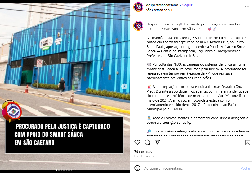Procurado pela Justiça é capturado com apoio do Smart Sanca em São Caetano