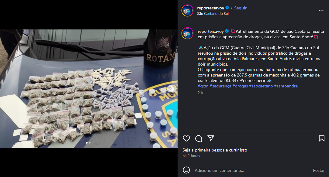 Patrulhamento da GCM de São Caetano resulta em prisões e apreensão de drogas, na divisa, em Santo André