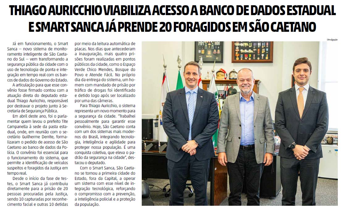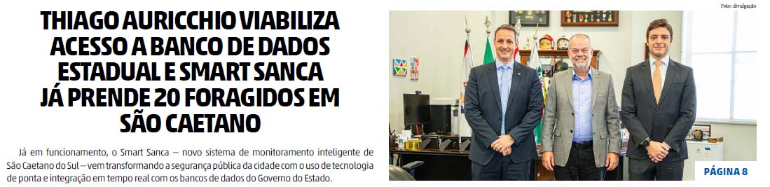 Thiago Auricchio viabiliza acesso a banco de dados estadual e Smart Sanca já prende 20 foragidos em São Caetano