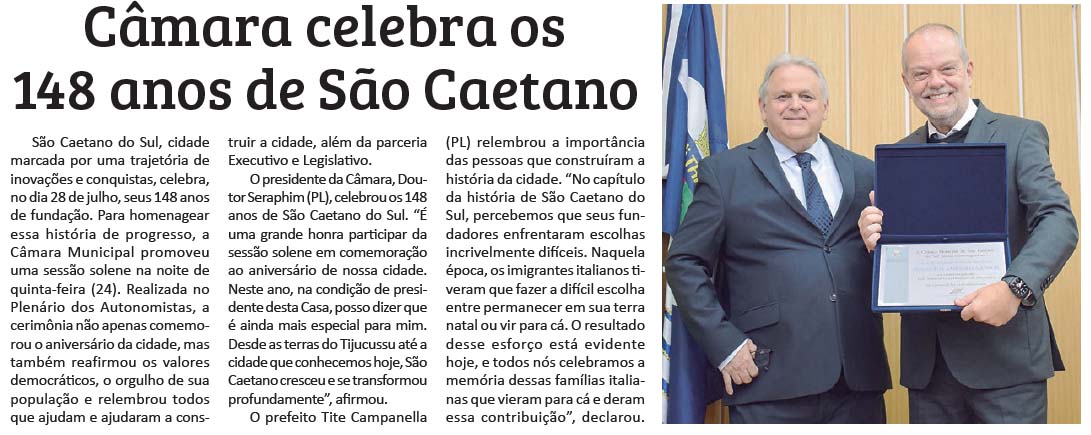 Câmara celebra os 148 anos de São Caetano