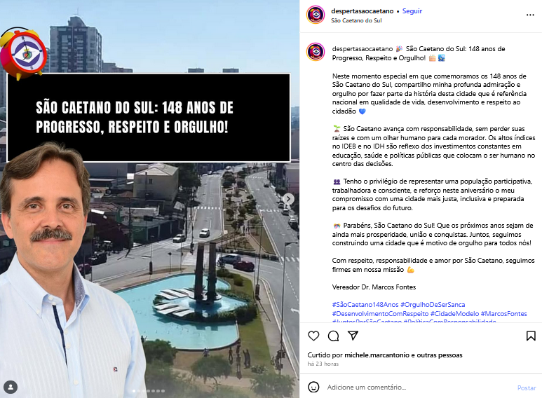 Veículo: Online -> Instagram -> Instagram Desperta São Caetano
