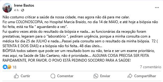 Moradora reclama da saúde de São Caetano