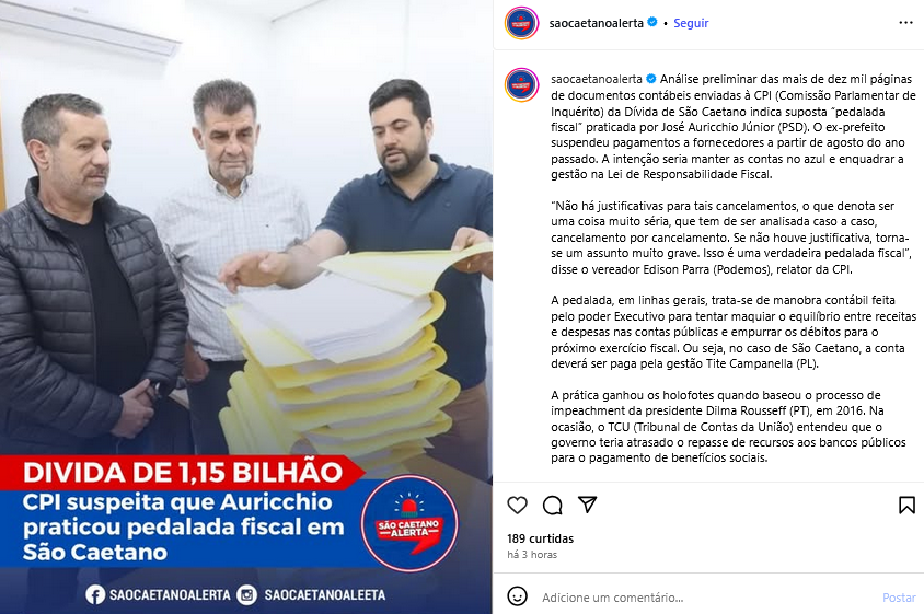 Veículo: Online -> Instagram -> Instagram São Caetano Alerta