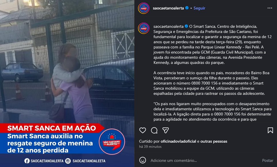 Smart Sanca auxilia no resgate seguro de menina de 12 anos perdida
