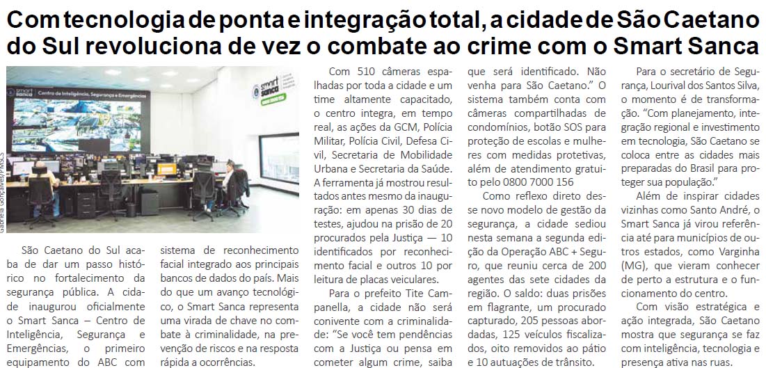 Com tecnologia de ponta e integração total, a cidade de São Caetano do Sul revoluciona de vez o combate ao crime com o Smart Sanca