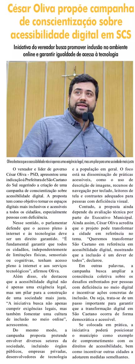 Cesar Olivia propõe campanha de conscientização sobre acessibilidade digital em SCS