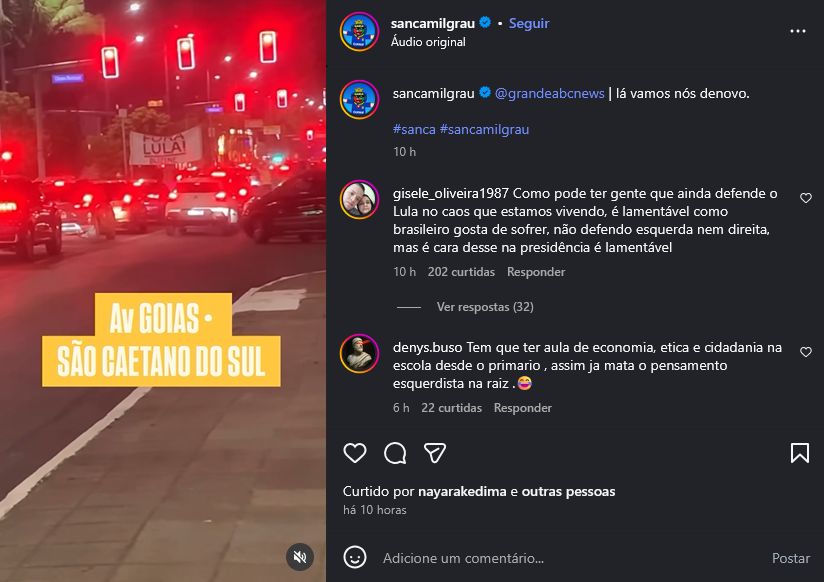 Veículo: Online -> Instagram -> Instagram Sanca Mil Grau