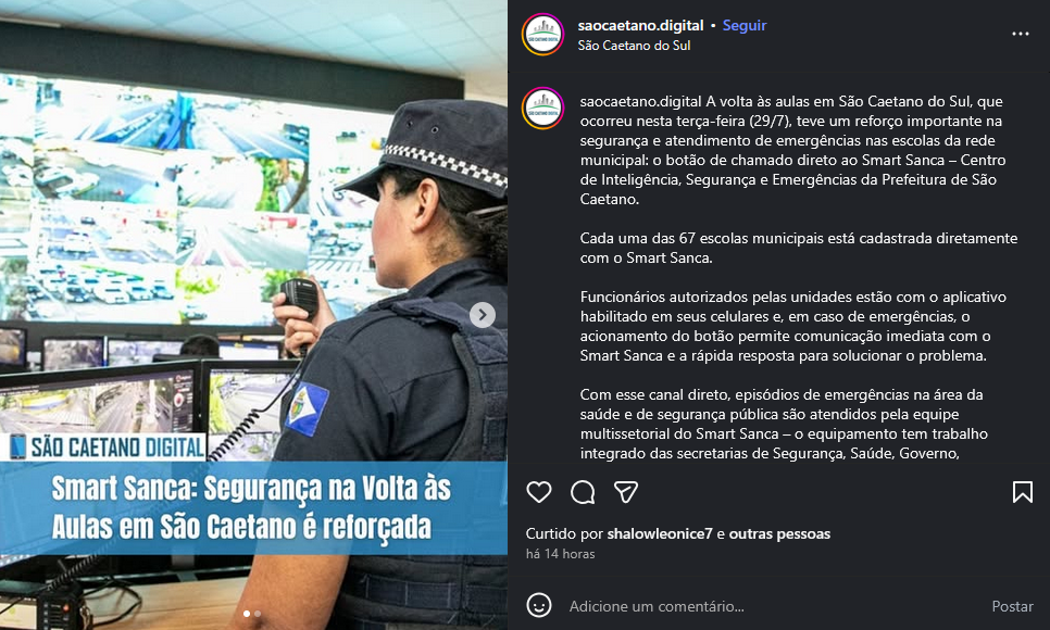 Smart Sanca: Segurança na volta às aulas em São Caetano é reforçada