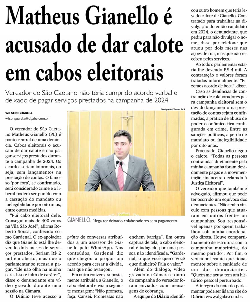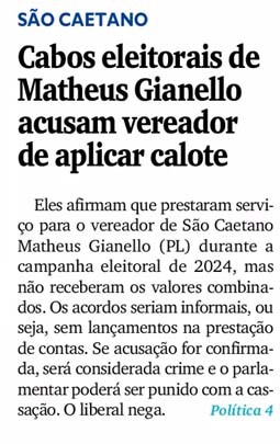 Matheus Gianello é acusado de dar calote em cabos eleitorais