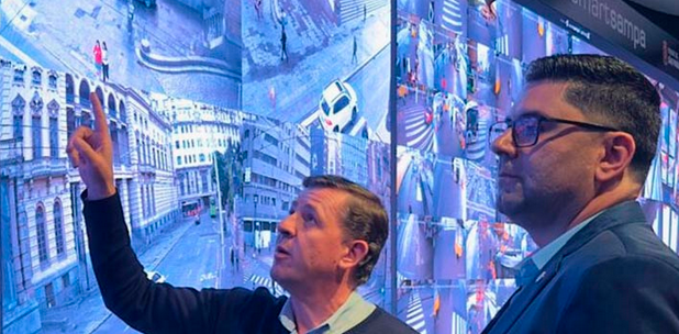 Coordenador geral do Smart Sanca, César Wendel foi ao Smart Sampa acompanhado do GCM Vicente Passos e de Débora Pirahy, responsável pelas relações institucionais do equipamento de São Caetano, onde foram recepcionados pelo secretário de Segurança de SP, Orlando Morando.
