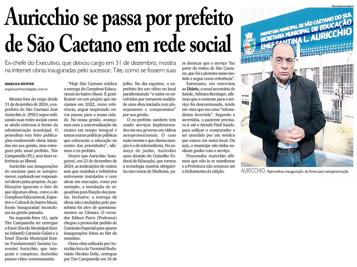 Veículo: Impresso -> Jornal -> Jornal Diário do Grande ABC
