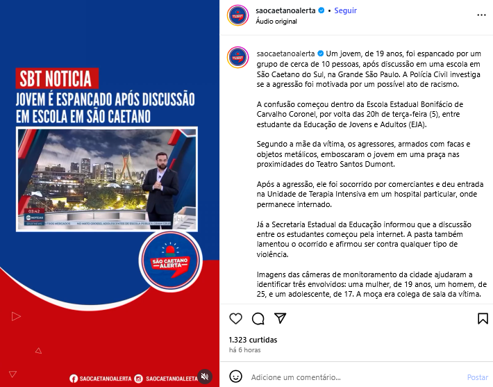 Veículo: Online -> Instagram -> Instagram São Caetano Alerta