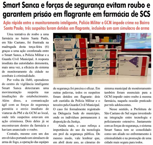Smart Sanca e forças de segurança evitam roubo e garantem prisão em flagrante em farmácia de SCS