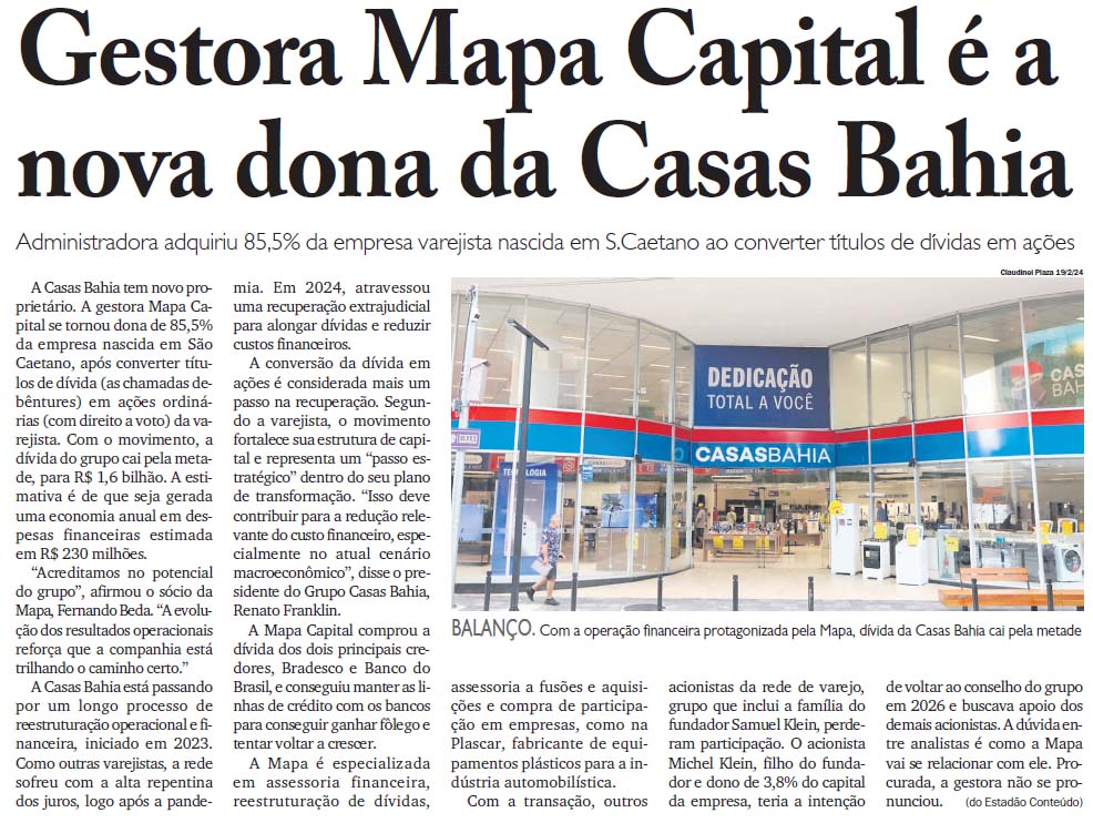 Gestora Mapa Capital é a nova dona da Casas Bahia