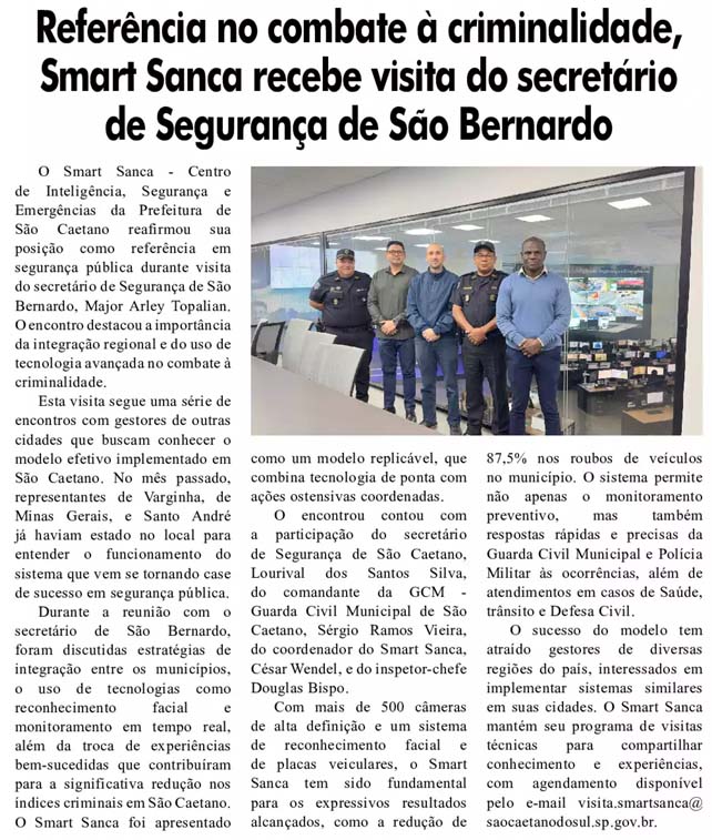 Referência no combate à criminalidade, Smart Sanca recebe visita do secretário de Segurança de São Bernardo