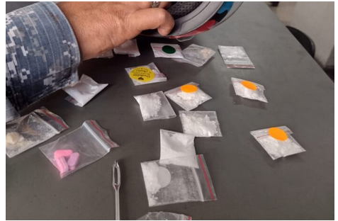 Uma revista mais detalhada revelou que o capacete possuía um compartimento secreto onde estavam escondidos diversos invólucros com cocaína, crack, LSD e ecstasy. A equipe também confirmou que a motocicleta era clonada e pertencia a outra pessoa, que detinha o veículo original em outra cidade.