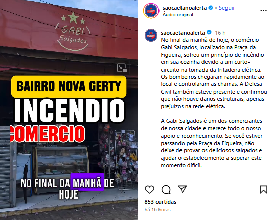 Veículo: Online -> Instagram -> Instagram São Caetano Alerta