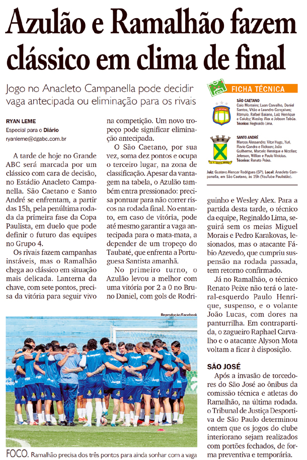 Veículo: Impresso -> Jornal -> Jornal Diário do Grande ABC