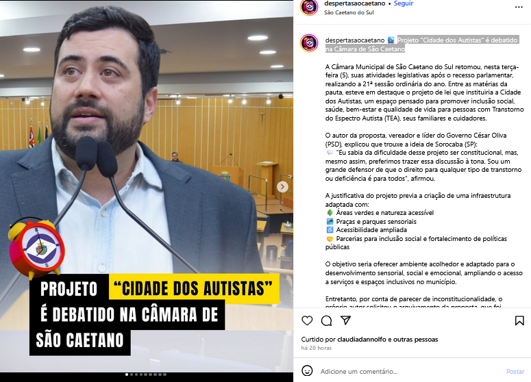 Veículo: Online -> Instagram -> Instagram Desperta São Caetano