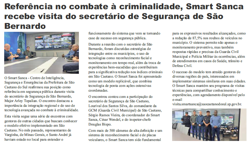 Referência no combate à criminalidade, Smart Sanca recebe visita do secretário de Segurança de São Bernardo