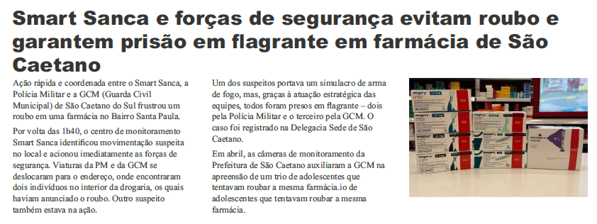 Smart Sanca e forças de segurança evitam roubo e garantem prisão em flagrante em farmácia de São Caetano