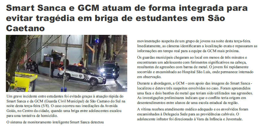 Smart Sanca e GCM atuam de forma integrada para evitar tragédia em briga de estudantes em São Caetano