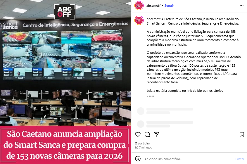 São Caetano anuncia ampliação do Smart Sanca e prepara compra de 153 novas câmeras para 2026