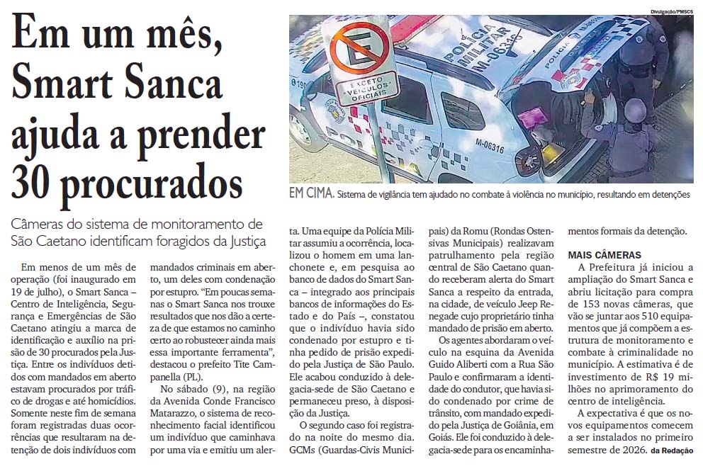Em um mês, Smart Sanca ajuda a prender 30 procurados