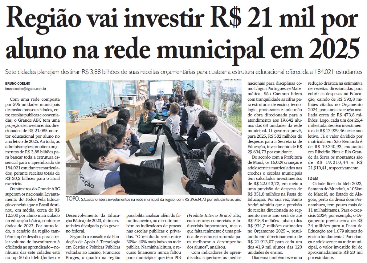 Região vai investir R$ 21 mil por aluno na rede municipal em 2025