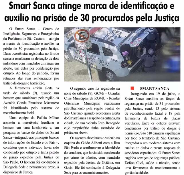 Smart Sanca atinge marca de identificação e auxílio na prisão de 30 procurados pela Justiça