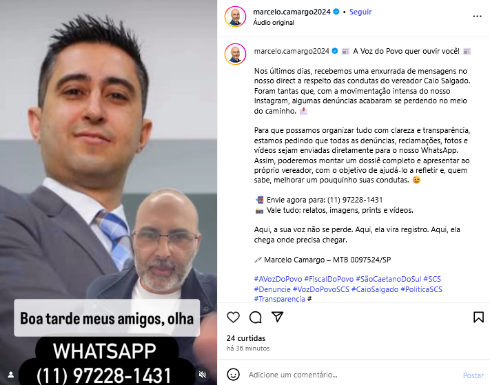 Veículo: Online -> Instagram -> Instagram Marcelo Camargo