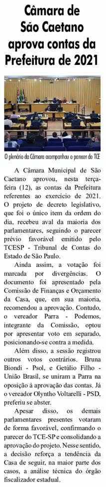 Câmara de São Caetano aprova contas da Prefeitura de 2021